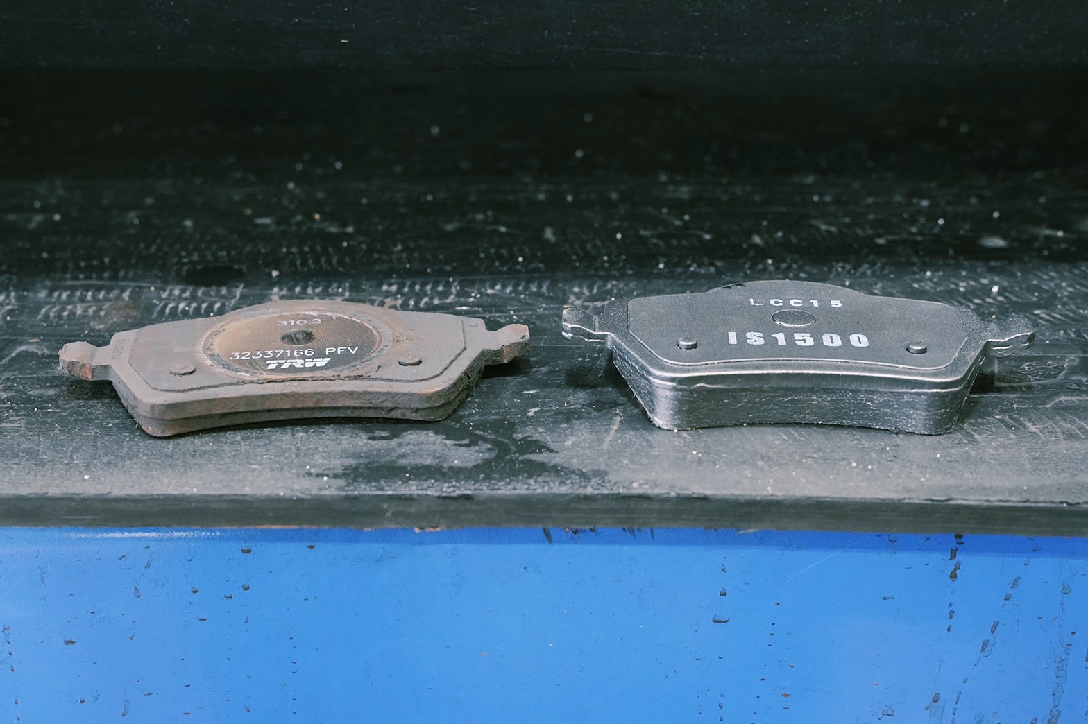 1月にオイル交換をしたときに、あと3000kmくらいでフロントのブレーキパッドを交換した方がいいですよ、と言われていましたが、4000kmを超えたので交換しました。